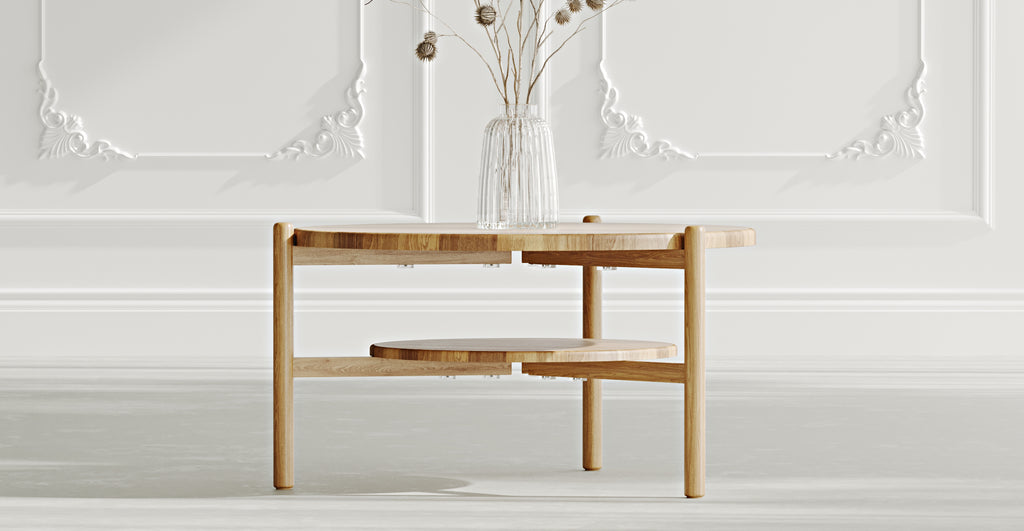 Complete your living space in a modern way with natural solid wood Norac coffee tables, available in three different sizes.