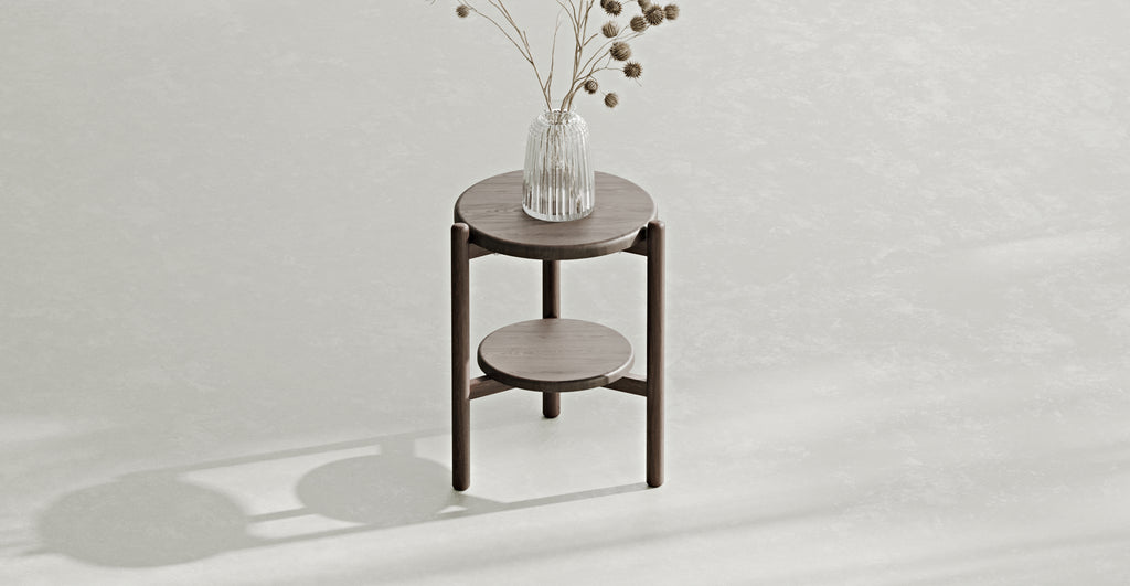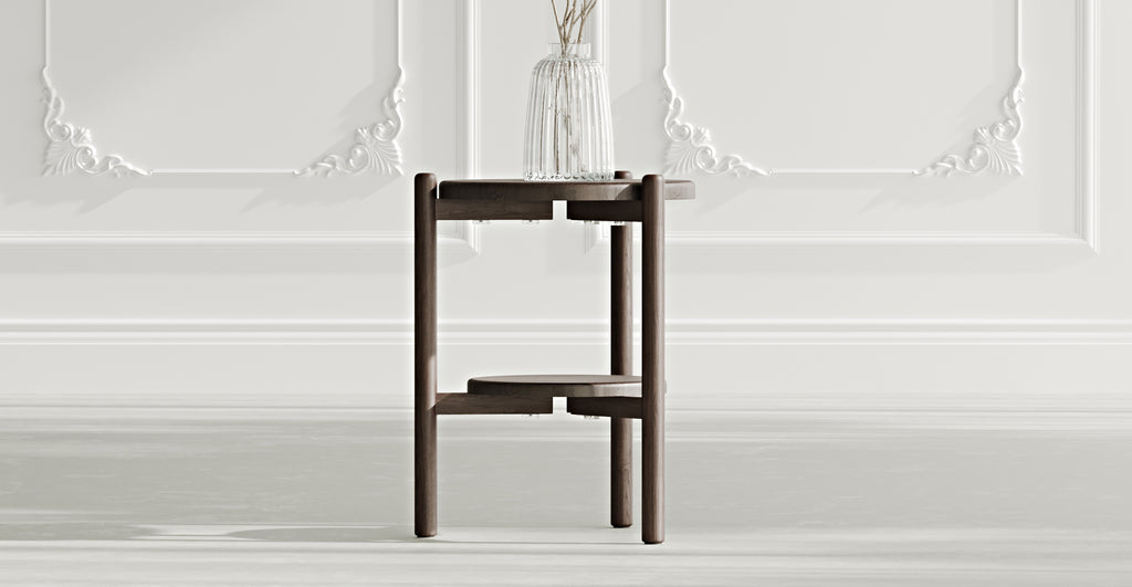 The tables and their legs are made of 100% solid oak, while the table top is made of natural oak veneer on solid oak wood. A protective lacquer preserves the surface. Again, bingo screws ensure the modular coffee tables are connected and felt glides protect the base.