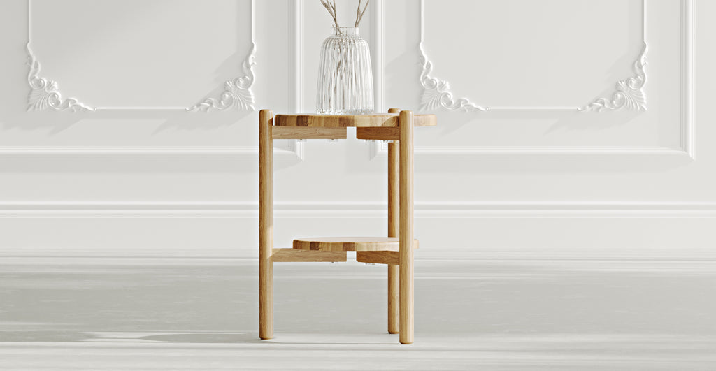 The oak table should always be placed on a flat surface. A clean, soft cloth is best for dusting. The natural oak wood is also sensitive to heat. Keep it away from direct heat sources and use protective coasters.